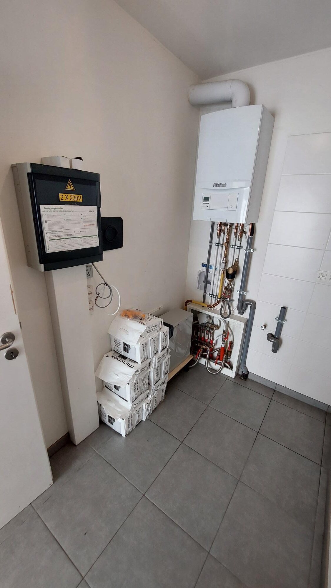 Châssis PVC DV, chaudière gaz de ville, adoucisseur d’eau, vidéophone, local à vélo