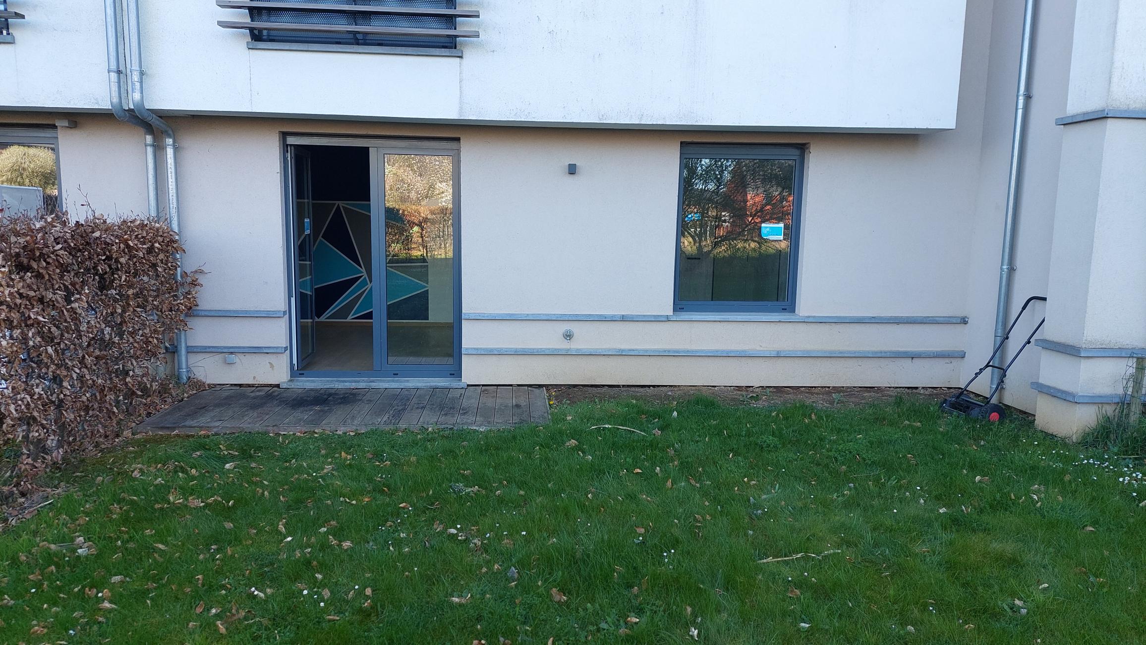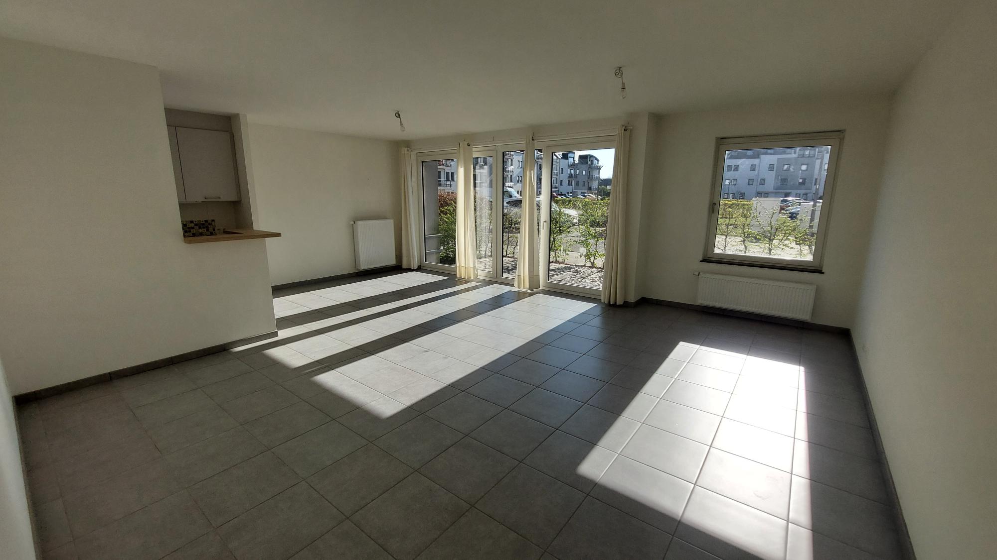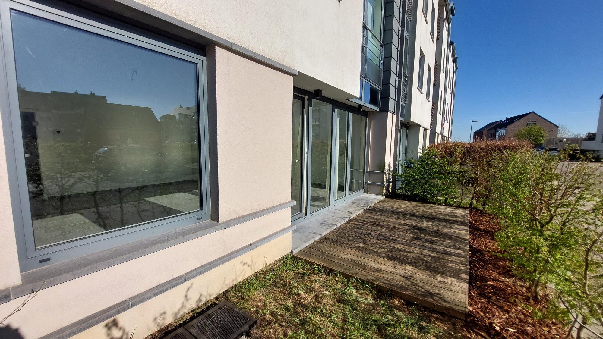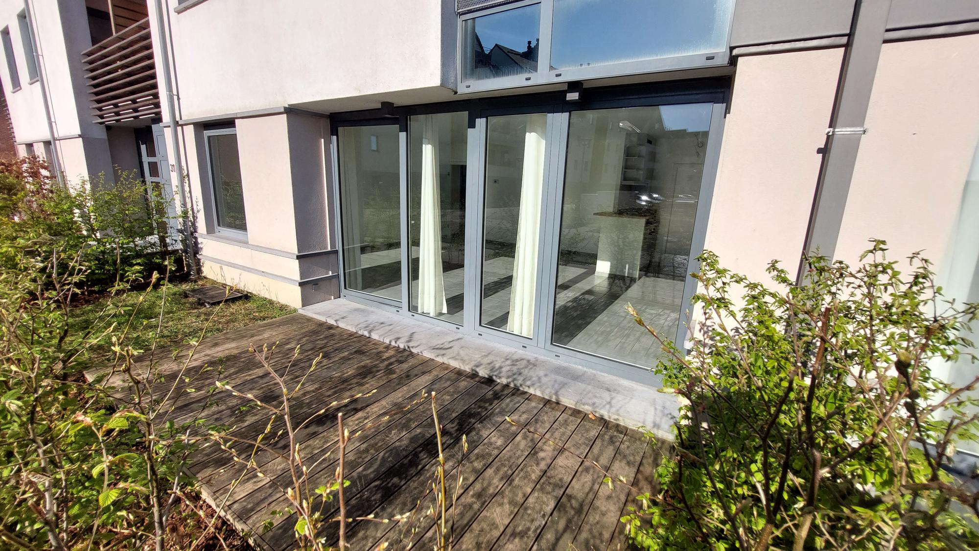 L’appartement, situé au rez-de-chaussée, se compose d’un grand et lumineux séjour avec cuisine équipée, d’une buanderie, de 2 chambres, d’une salle de bain et d’un wc séparé. L’appartement possède une belle terrasse ainsi qu’un jardin accessible via une des chambres à coucher.